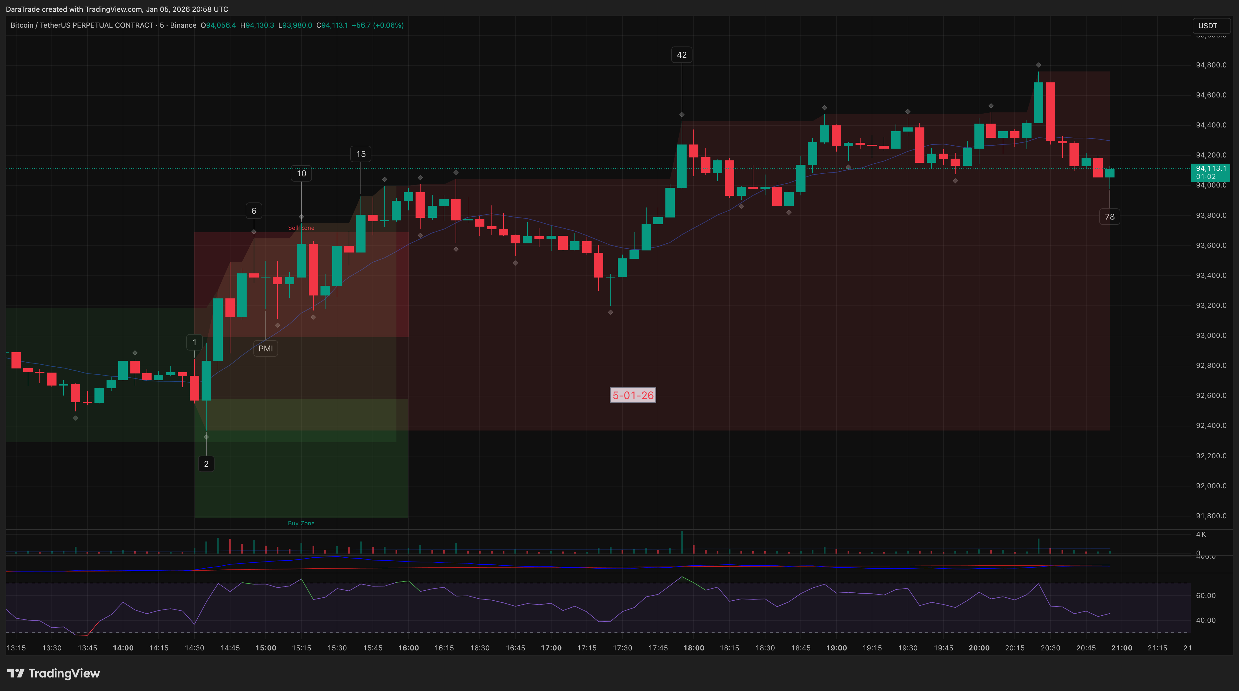 Since the start of the new year, we’ve seen a gradual bullish push, with price moving back toward — but not yet into — the 94,000 major resistance zone.